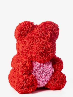 Roter Rosenbär mit rosa Herz 25cm